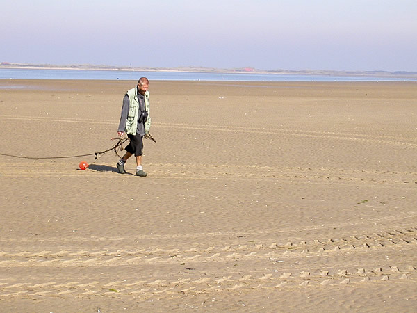 Der Weg führte vom Nordwesten der Insel über den festen Sandstrand, längst den hohen Dünenabbrüchen der letzten Sturmflut über einen Dünenweg. Wir liefen weiter auf einer alten Fahrspur, die zahlreiche Versorgungsfahrzeuge vom Unimog bis zum kettengetriebenen Hägglundsgerät, die mit dem Versorgungsschiff angelandet wurden, hinterlassen hatten. Es ging vorbei an warnend auffliegenden eleganten Mantelmöwen und keifenden Austernfischern. Wir störten hier, dass war unübersehbar.