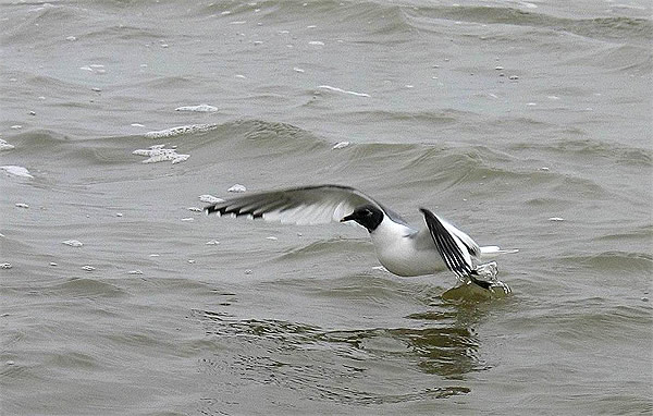 Auf der Rücktour bei mäßigem Wind an der Tonne 19 des Fahrwassers des "Groote Gat" beobachteten sie eine Möwe, die zunächst als "gewöhnliche" Lachmöwe durchging. Der sehr dunkle Kopf und die auffällige Flügelzeichnung machten aus der vermeintlichen Lachmöwe ganz schnell eine Schwalbenmöwe (Larus sabini [Xema sabini]). Sie dümpelte dort in den Wellen, pickte im treibenden Blasentang nach Beute und flog hin und wieder auf.